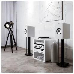 The KEF Q350 bookshelf speakers offer great sounds that are enhanced by the magnetic grilles, these grilles will also provide visually pleasing aesthetics. The solid speaker cabinet can be easily placed on KEF stands that will fit safely next to your TV or HiFi setup.