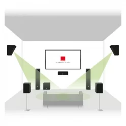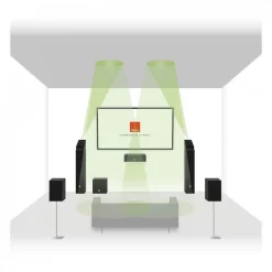 The ALTECO C-1 delivers believable height information from Atmos, DTS-X and Auro-3D movies in surround setup – not only when “firing up” using the ceiling as a reflector, but also “firing down” from a position up under the ceiling.