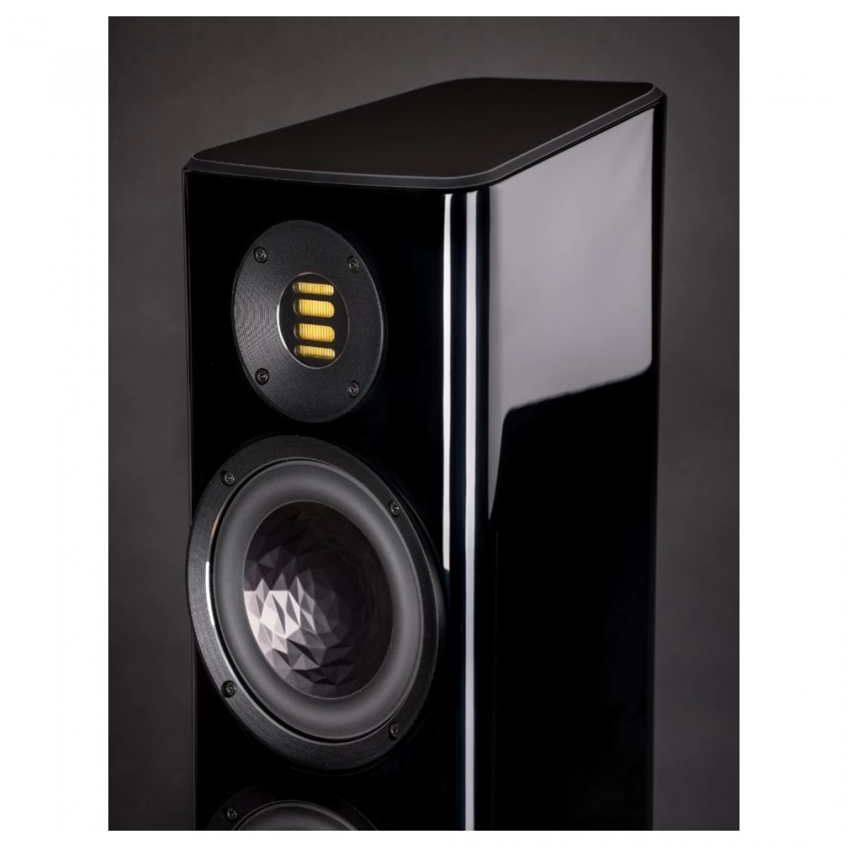 The ELAC Vela BS 407 Speakers incorporate high-class lacquered cabinets distinguished by the trapezoid shape and rearward angled design, combined with aluminum and glass. The design catches eyes but conduces acoustics, too. The sound of VELA shows it´s family background to successful series 400. But the advantages are distinct. The angling of the cabinet in combination with the new wave-guide of the JET tweeter improves the definition of stereo and multi-channel audio in modern furnishing. But there are more than the obvious changes. For example the optimized drivers are able to reproduce high-energy transients more precisely.
