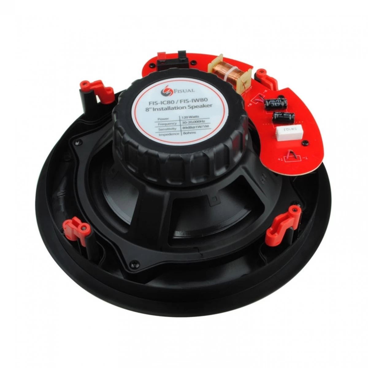 The Fisual IC80 ceiling speaker utilises 8″ woofer for increased power handling and lower bass-response compared with speakers using standard 8″ drivers. The magnetic grille is paintable and once on makes the speaker practically unnoticeable.