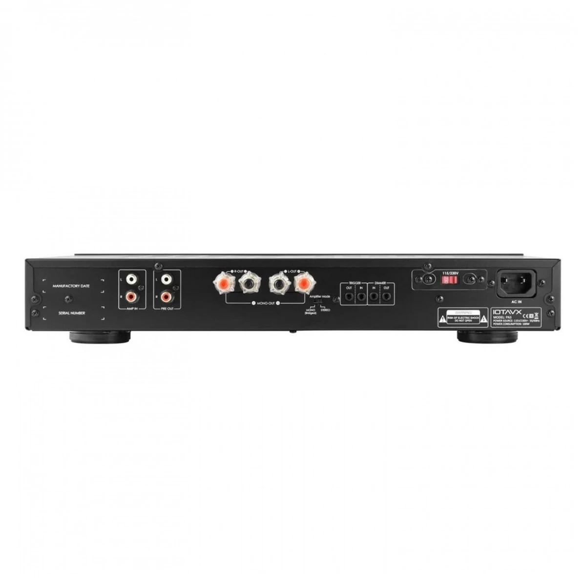 With multiple RCA inputs, the IOTA VX PA3 amplifier can connect to virtually any AV component so you can enhance the sound of your entertainment. The preamp outputs mean the high-quality signals can be transferred to a separate amplifier to further augment the sound. You can also use the PA3 to switch external devices on/off by using the trigger and dimmer inputs/outputs.
