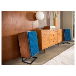 The 1-inch titanium dome tweeter is mated to a wave guide with an acoustic lens for optimum integration with the 5-inch pure-pulp cone mid range driver directly below it. Powerful bass is provided by a 12-inch cast-frame, white pure-pulp cone woofer in a bass-reflex enclosure, tuned via a single front-firing port tube.The high-frequency and mid-frequency L-pad attenuates on the front baffle preserve the classic features of this iconic legend.