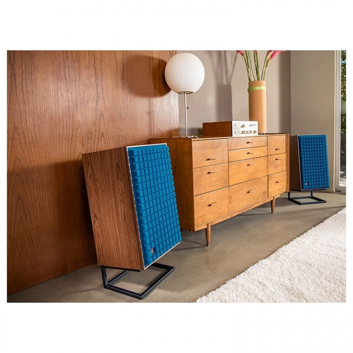 The JW300PW-8 12-inch white pure pulp cone woofer operating in a bass-reflex enclosure cleanly delivers powerful, moving bass via a single front-firing port tube with flared ends. The mid- and high-frequency L-pad attenuators on the front baffle pay homage to its legendary namesake. No detail has been overlooked.