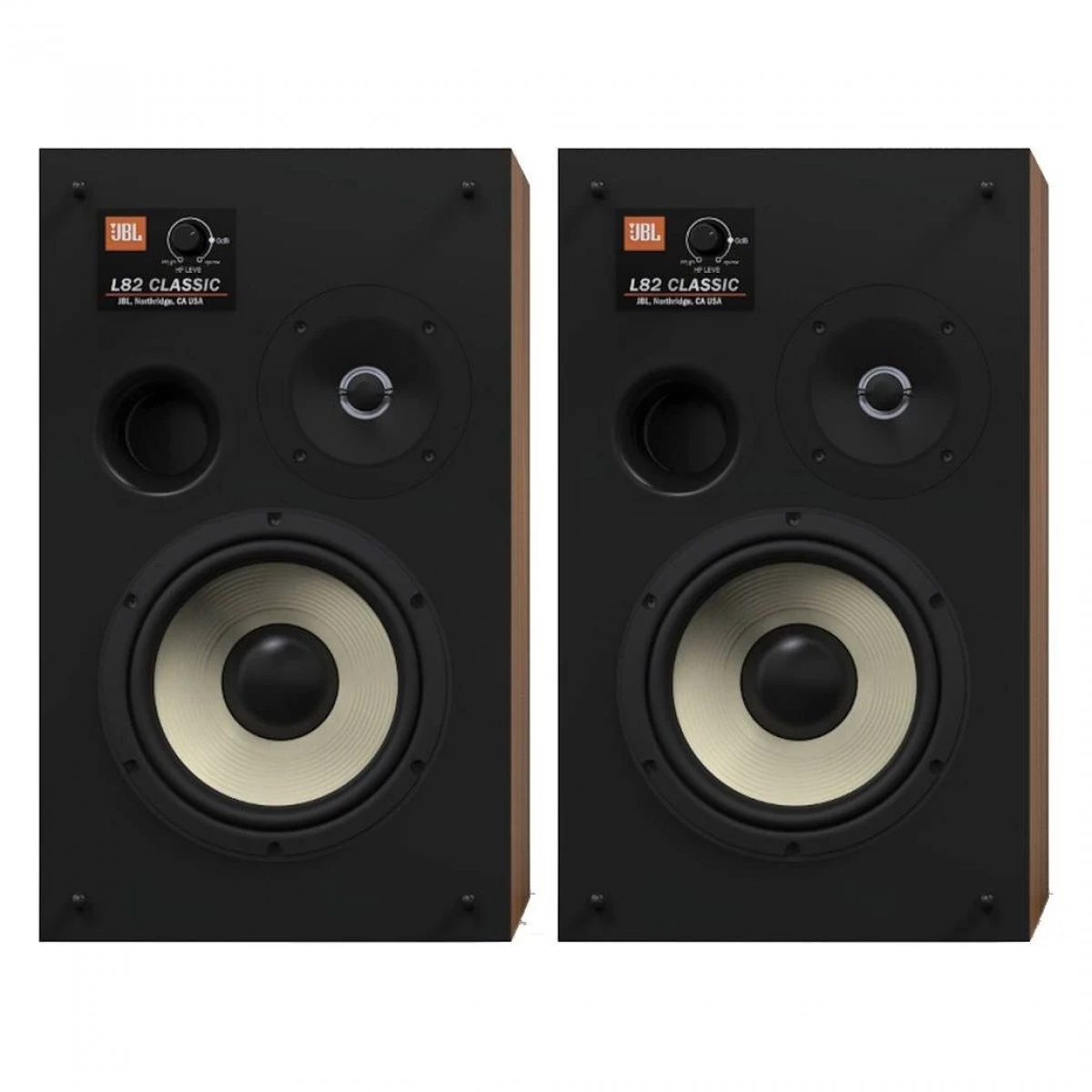 The L82 Classic is a compact 8-inch (200mm) 2-way bookshelf loudspeaker featuring JBL’s advanced acoustic technologies in combination with the iconic retro-inspired style of its larger family member: the L100 Classic. The vintage design of the L82 Classic features a genuine walnut satin wood veneer cabinet and a striking Quadrex foam grille available in a choice of black, orange or blue.
