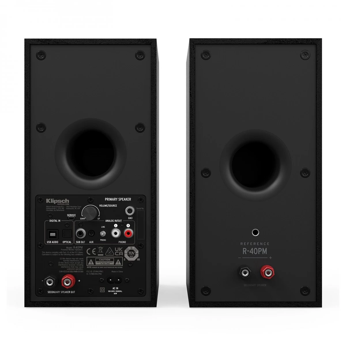 - Klipsch R-40PM Reference Powered Bookshelf Speakers (Pair), Black