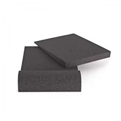 AcouFoam 5 Studio Monitor Isolation Pads by Gear4music, Pair, are designed to effectively isolate your studio monitor from its surrounding environment but can also have potential other applications in a studio and home audio setting. Using a specially chosen, load bearing and absorptive foam, the studio monitor isolation pads provide safe mounting and also minimise compression over time. Decoupling your studio monitor using a layer of foam means you can reduce vibrations and lessen the effect of colouring on sound and losing sound towards the floor.
