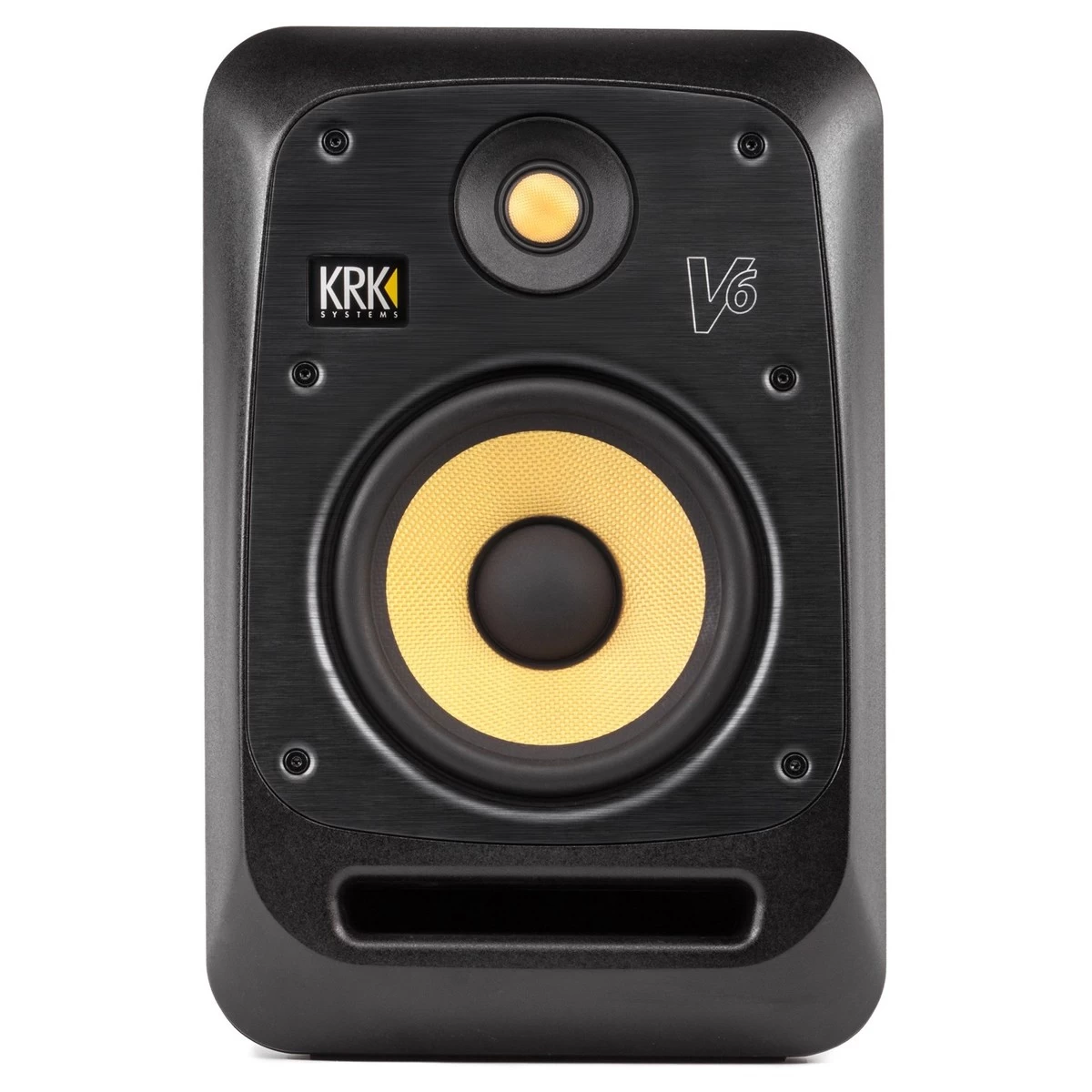 The KRK V6S4 is a two-way, full-range studio reference monitor designed to deliver extreme accuracy and superior control. The V6S4 builds on the success of KRKs innovative studio monitor range, combining the best of modern technology while retaining the classic principles that produced the high-quality reference monitors. The V6S4 Active Studio Monitor includes a 1-inch KRK designed Kevlar tweeter, accompanied by a 6.5-inch lightweight custom woven Kevlar woofer. The Kevlar construction for both the woofer and tweeter ensures a smooth midrange, combatting against colourisation. The two-way design is drive by the 155 watt custom, bi-amped Class-D amplifier that provides immense power for exceptional audio quality.