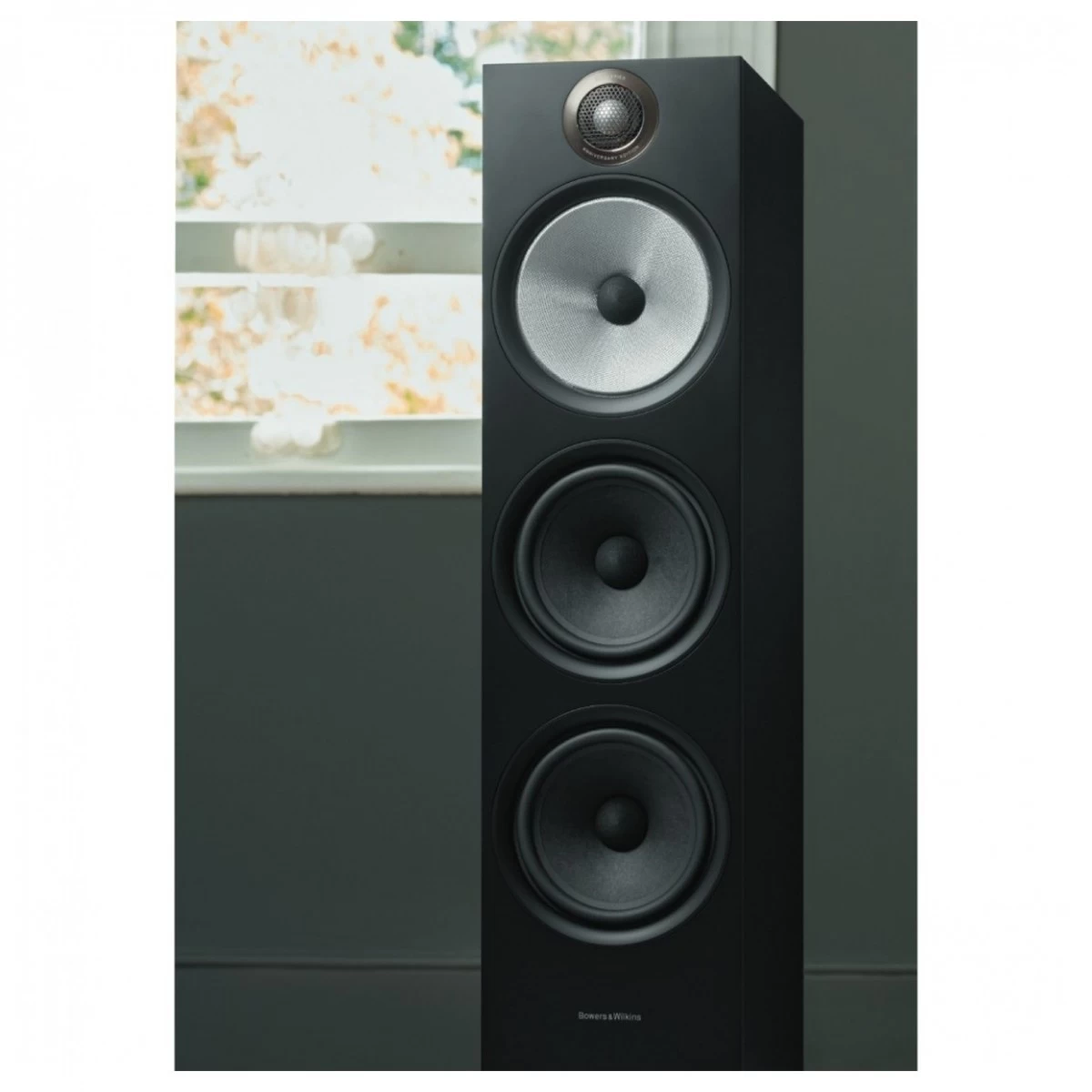 The 603 S2 Anniversary Edition, as the only floorstanding speaker in the 600 range, has been designed to make an impact. As the leader of your surround sound speaker setup or the showpiece of your large stereo HiFi system, these speakers stand around a metre tall. The three-way design consists of a 25mm aluminium tweeter, a 150mm Continuum cone FST midrange and two dedicated 165mm paper bass drivers. These are supported by a rear-facing bass reflex, the Flowport™, which uses a dimpled design to reduce drag on air leaving the cabinet.
