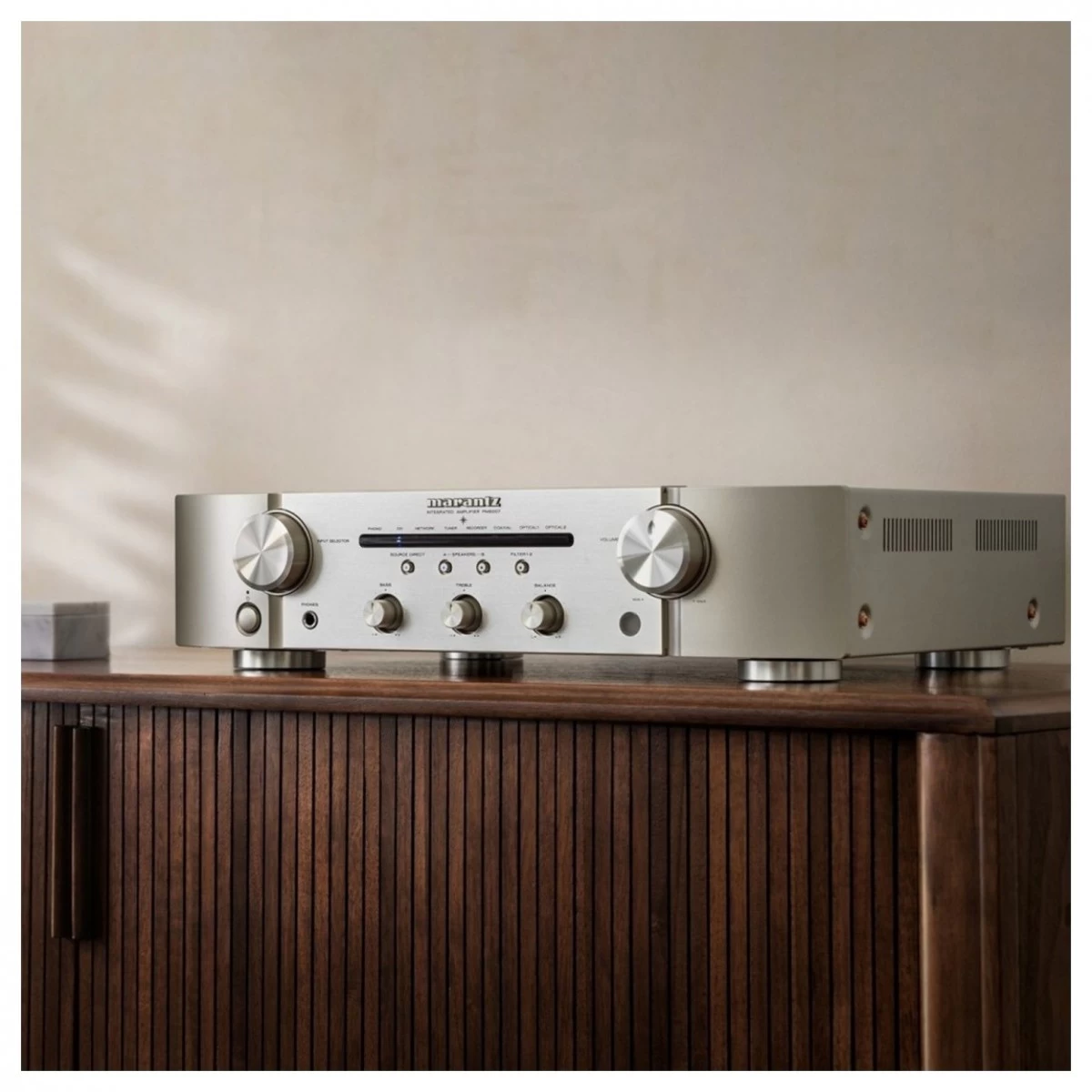 Power from the PM6007’s toroidal transformer is supported by high-current storage capacitors and Schottky Barrier Diodes. These quality components, specially selected for their electrical benefits by experts at Marantz, contribute to a broad dynamic range and low-impedance drive.