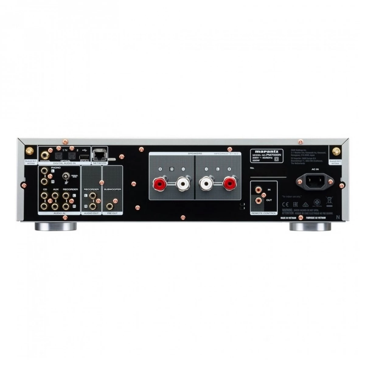The PM7000N features several input and output options to help you amplify your separates. Firstly, two 60-Watt (8 ohm rms) channels and further subwoofer pre-out get you connected to the your Hi-Fi speakers. Two optical, one coaxial, and one USB-A input offer data transfer between audio or video devices. Moreover, if you love vinyl but want bigger and better sound, the phono input with Marantz’s new FET input stage enhances signal purity and gives sound an overall boost.