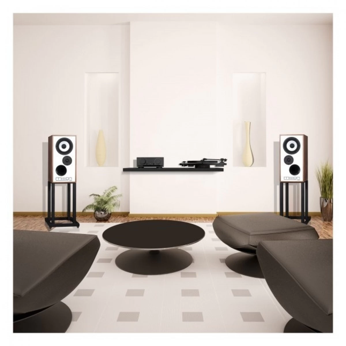 A luxurious design that is true to the original. Featuring a luxurious laminated front and hand-applied wood veneer finish, their sophisticated look with enhance any listening space.