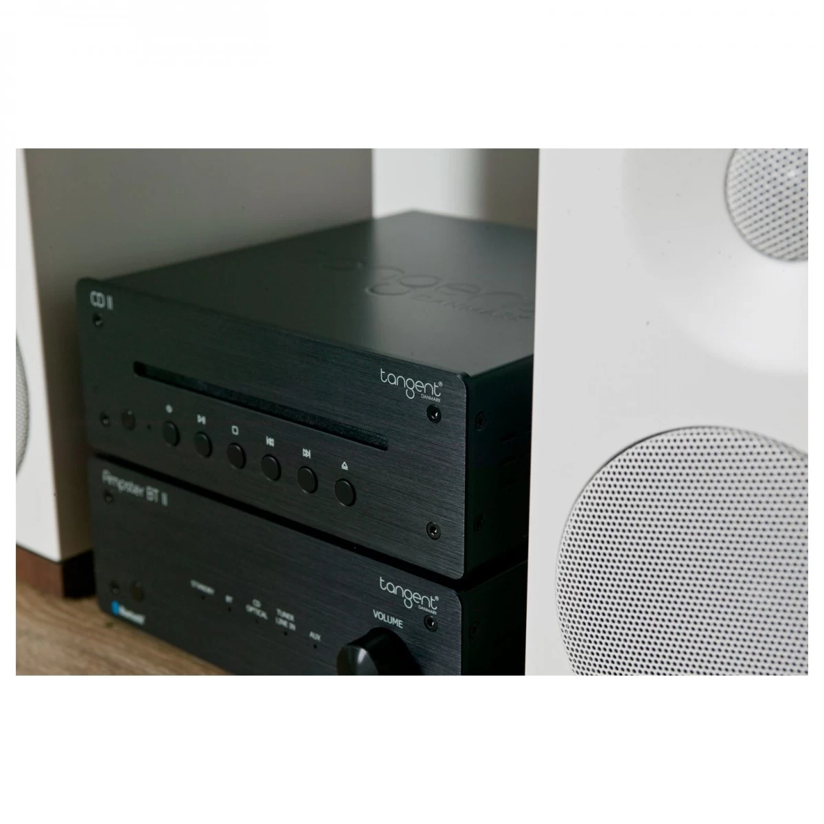The Tangent CD II CD Player is part of Tangent’s new Hi-Fi II range of compact, mini sound systems. The Tangent CD II, Ampster BT II Amplifier, and Tuner II can be stacked for a complete audio system which saves space. Each component of this Tangent series is a mere 7cm high, meaning the combined height of all three components is only 21cm vertically.