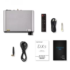 Besides the OLED display, the front panel all features both 6.35mm jack and 4-Pin XLR headphone outputs. Thanks to NFCA circuitry present throughout a range of Topping amps, pair with a range of headphone sensitivities whilst still maintaining exceptionally low levels of distortion. Between 1800mW per channel at 32Ω and 250mW at 300Ω, the DX5 fits the most power hungry over-ear headphones or sensitive IEMs alike.