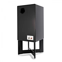The cuboid enclosure unifies internal standing waves at a specified frequency, which are cancelled by a newly developed resonance tube (patent pending). This technology eliminates the previous need for the huge amount of sound-absorbing material inside the enclosure. The result is the virtual elimination of standing waves with amazing efficiency and pin-point accuracy—to energetically revive the essential presence of music, formerly lost by sound absorption.